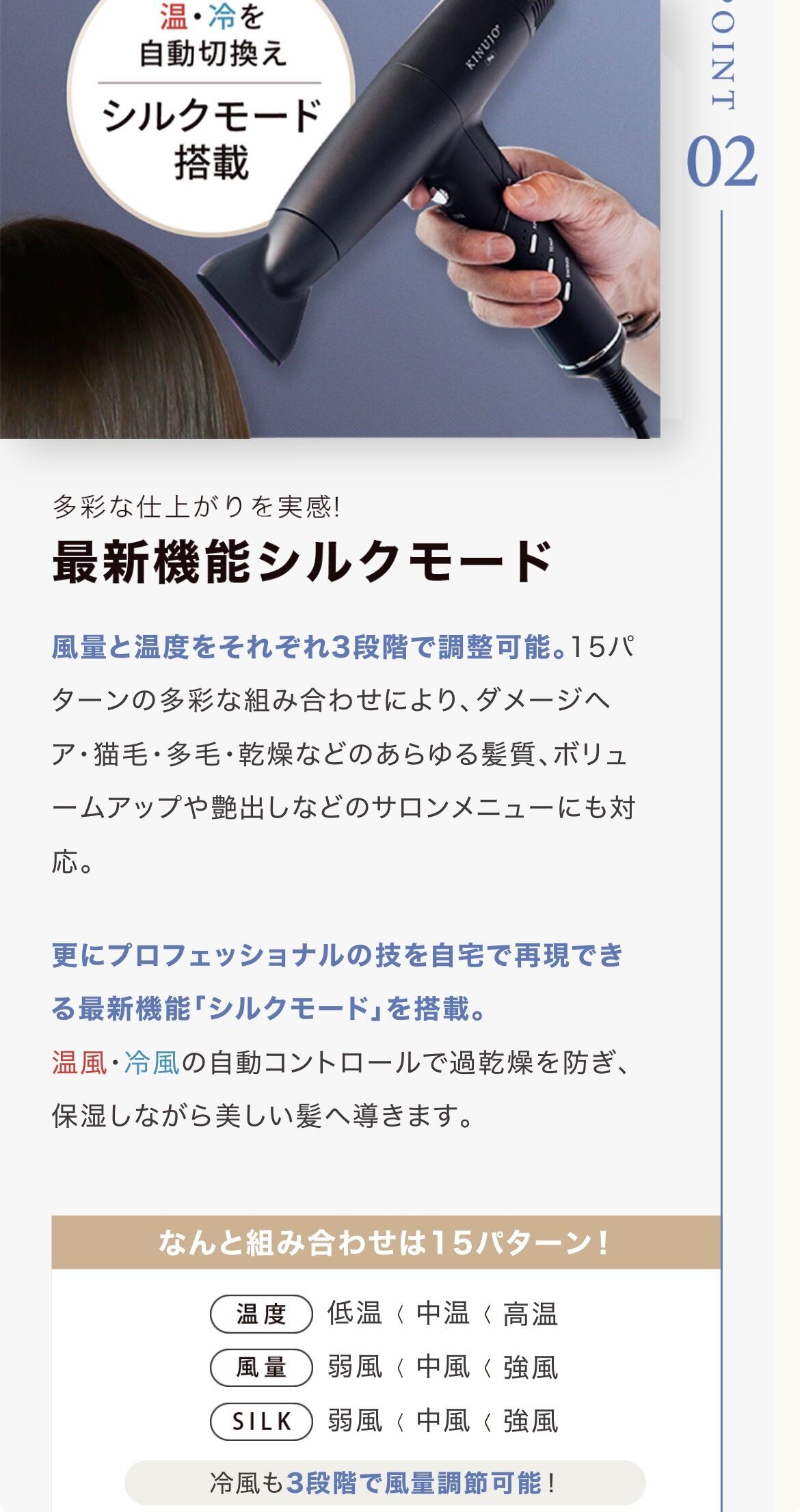 最新機能「シルクモード」で速乾を叶えながら潤うツヤ髪を実現します。