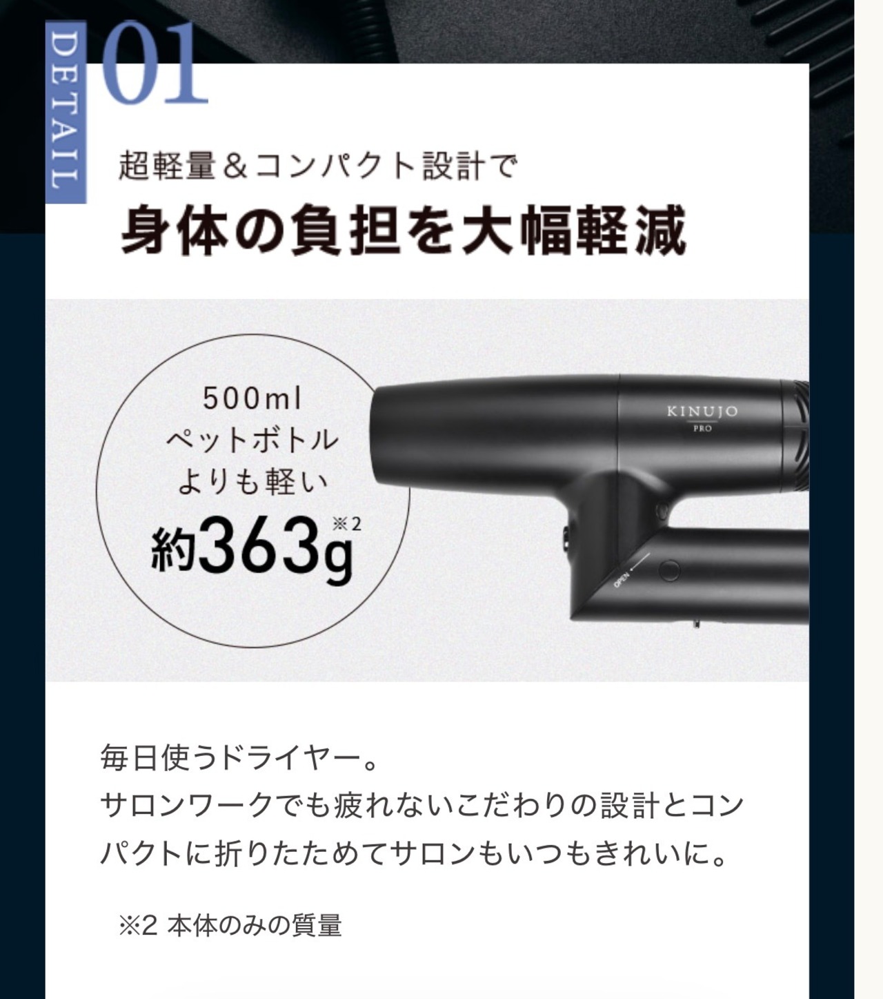 ■超軽量&コンパクト設計でドライによる肩こりを大幅軽減