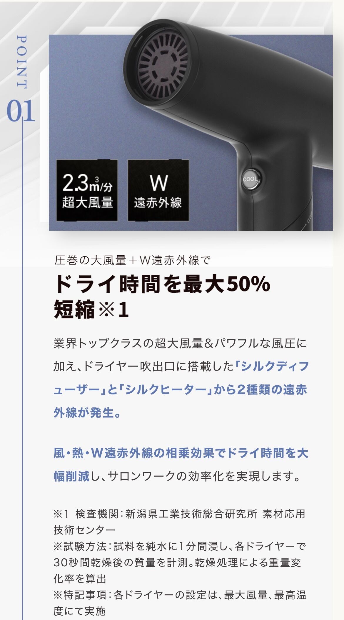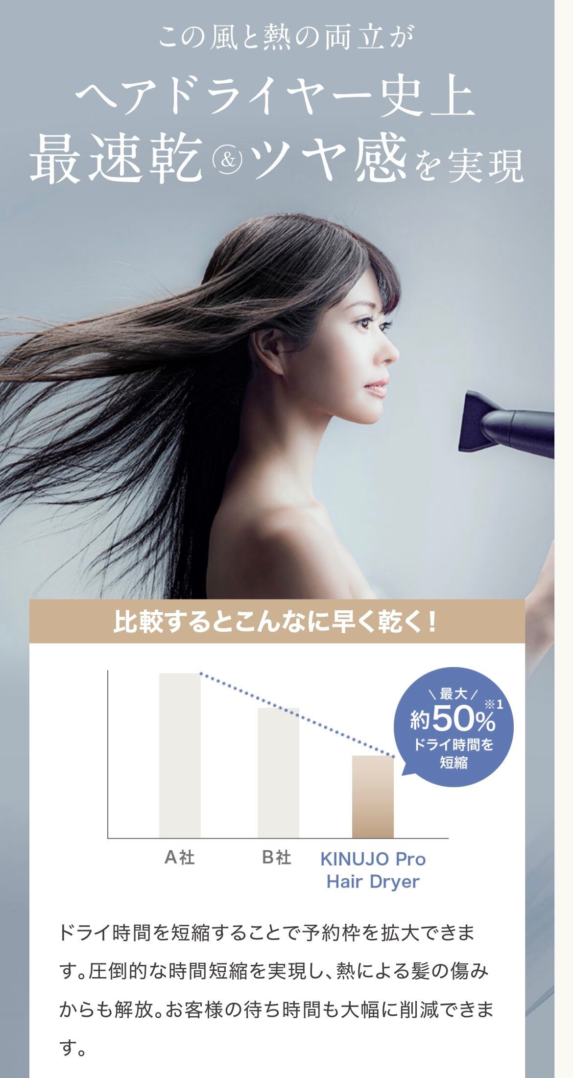 風・熱・W遠赤外線の相乗効果でドライ時間を大幅削減し、サロンワークの効率化を実現します。